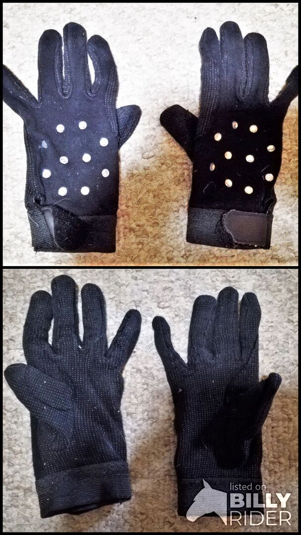 Color: Black With beautiful glitter stones on the surface of the hand. Velcro closure Inside of the hand with small nubs for better grip on the reins. Rather thinner, so perfect for the summer