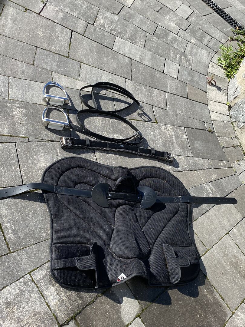 Riding pad with stirrups - Sell my riding pad from Loesdau (new price without stirrups 145€). Have used it exactly 6 times, but my pony (has gained weight) it is now too small. Incl. belly strap, stirrup leathers and stirrups ☺️