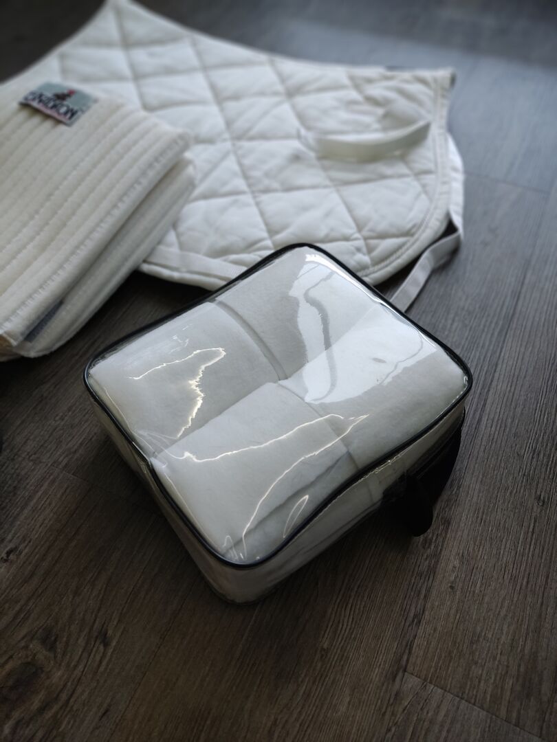 Riding set/ competition set in white for warmbloods - We are selling our little used tournament set in white consisting of: