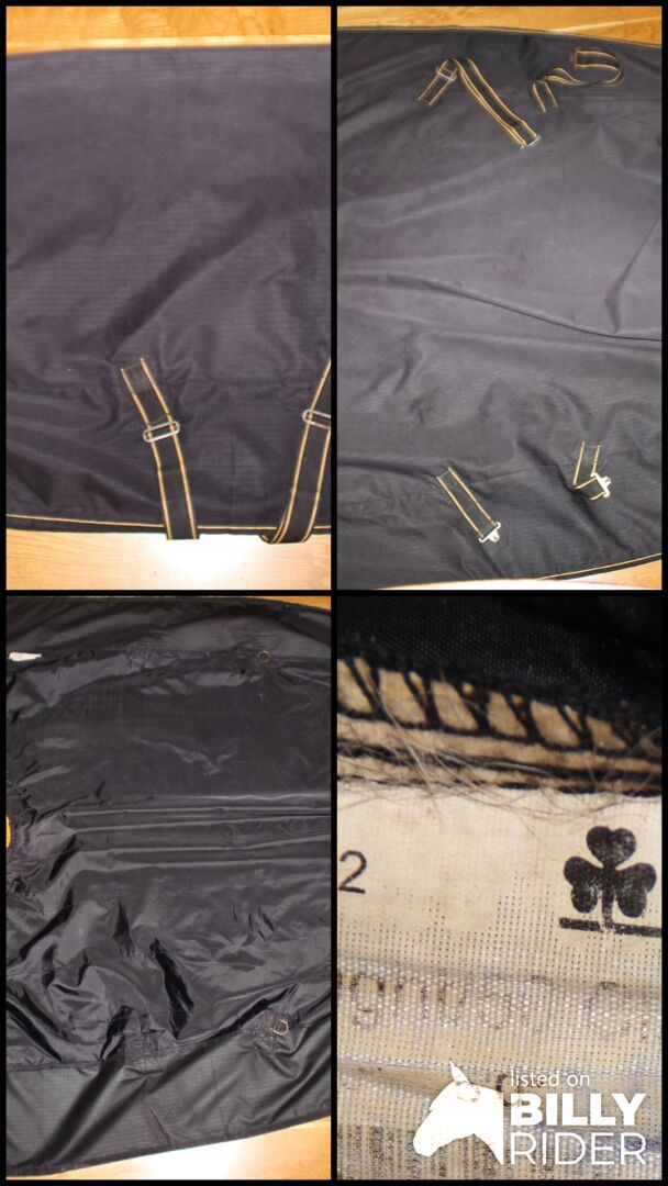Rug, Bucas, Irish TO light 115 cm RL black rain rug - Rug, Bucas, Irish TO light/50 Classic, 115 cm RL, color: black, with cross surcingles, crupper and leg straps. The rug was used as a reliable, light and at the same time waterproof wind and rain rug. The rug has been washed, impregnated and is waterproof. Damage to the outer and lining fabric has been repaired professionally and as inconspicuously as possible. Each layer was sewn separately and the seams in the outer fabric were additionally rubberized. Filling 50 g, Stay Dry lining. 59,90 € plus shipping. #2426