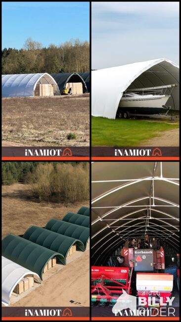 Vorteile auf einen Blick: starke PVC-Plane 900 g/m², UV-Schutz 50+, hohe Reißfestigkeit, stabile verzinkte Stahlkonstruktion, große Nutzfläche, Rundbogenform für besseren Ablauf von Regen und Schnee, zwei große Eingangstore, schnelle Montage, mobil und flexibel einsetzbar, ideal für Heu, Stroh, Futtermittel, Maschinen, Fahrzeuge und Lagerwaren. Die Konstruktion ist für Windgeschwindigkeiten bis 80 km/h ausgelegt.