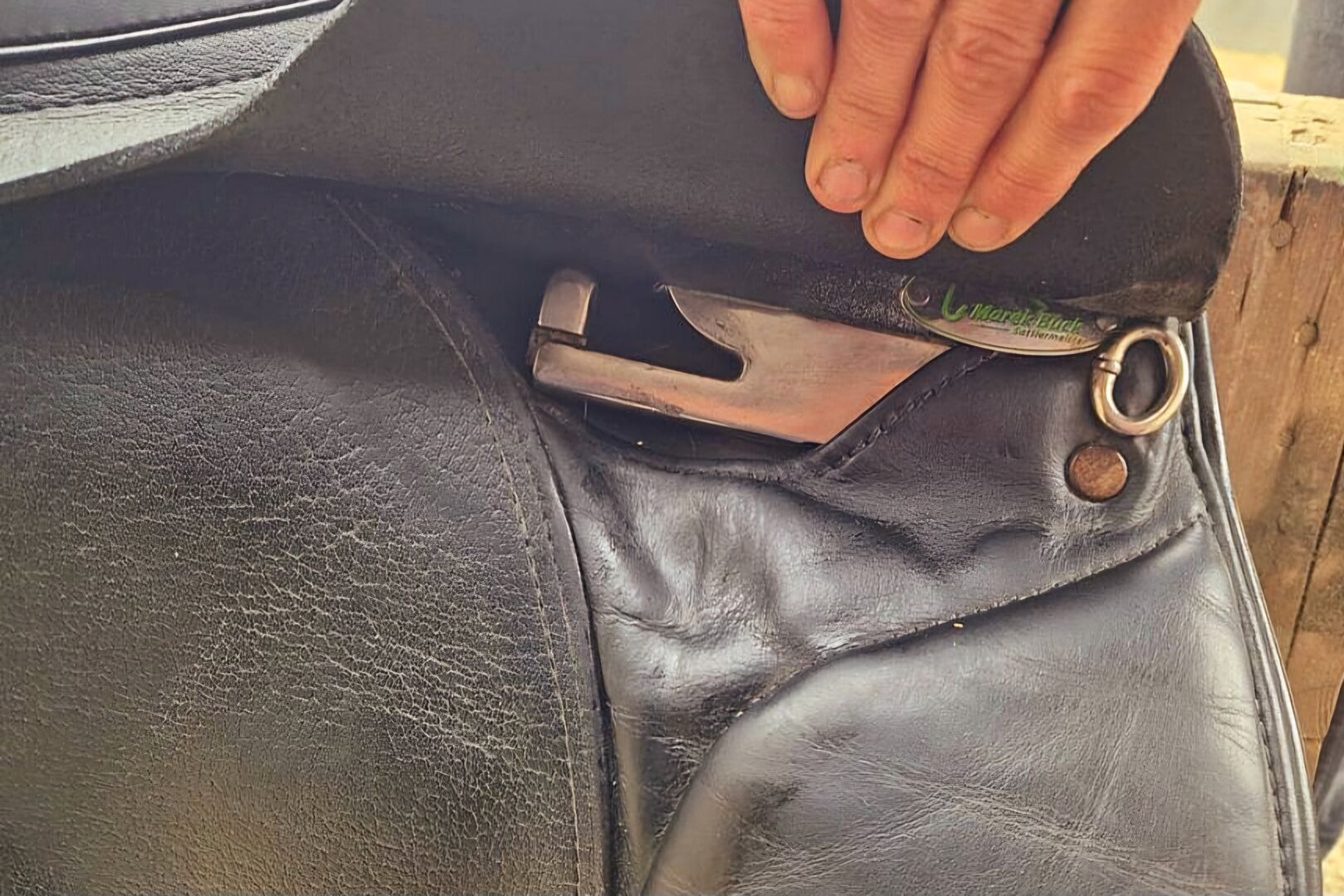 The saddle was always stored covered in a dry saddle cupboard and looked after. As you can see in the pictures there are knee rolls on the knee, these are removable.