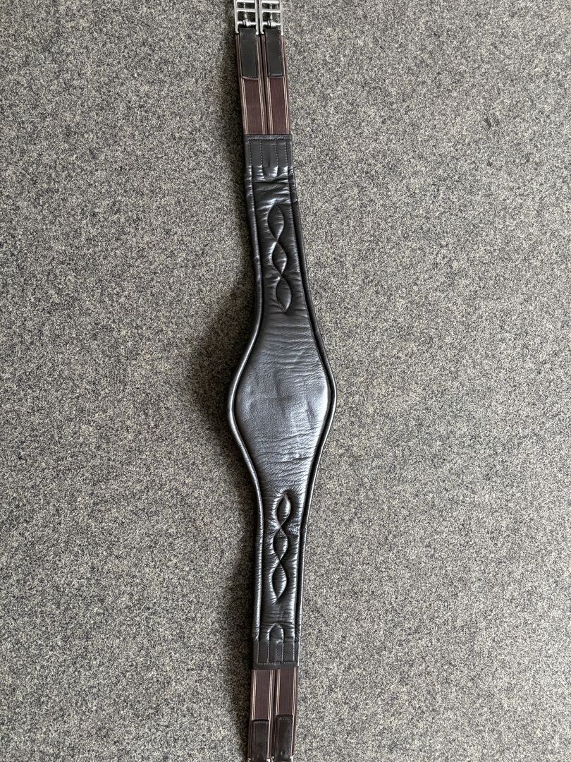 Saddle girth 125 cm - Used saddle girth in 125 cm. Large snap hook in the middle and small D-rings on the side for quick attachment of auxiliary reins.