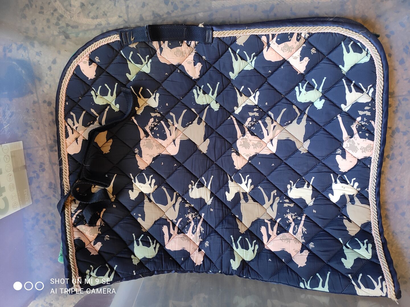 Navy VS saddle pad with pink and turquoise horse motifs 5€