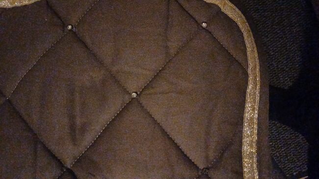Saddle pad with glittering stones - I am selling my saddle pad in good condition. It has glittering stones in the back corner. Size: Pony The saddle pad has not been used often and has been freshly washed. Shipping may incur additional costs.