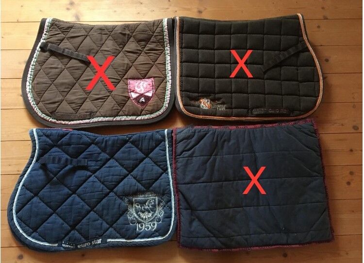 saddlecloth / saddlecloth - Various saddlecloths and saddle pads in different designs, each unit retail price € 5.00 (excl. shipping). Originally full-size, they have shrunk a little in size due to washing, but still fit on slightly smaller saddles.