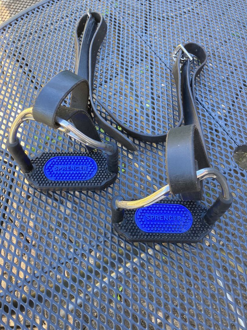 Safety bow Balance from Sprenger - Sprenger safety stirrup bow Balance. Very little used. In mint condition. Includes stirrup leathers in very good quality leather. Also in mint condition. Could also be purchased separately.