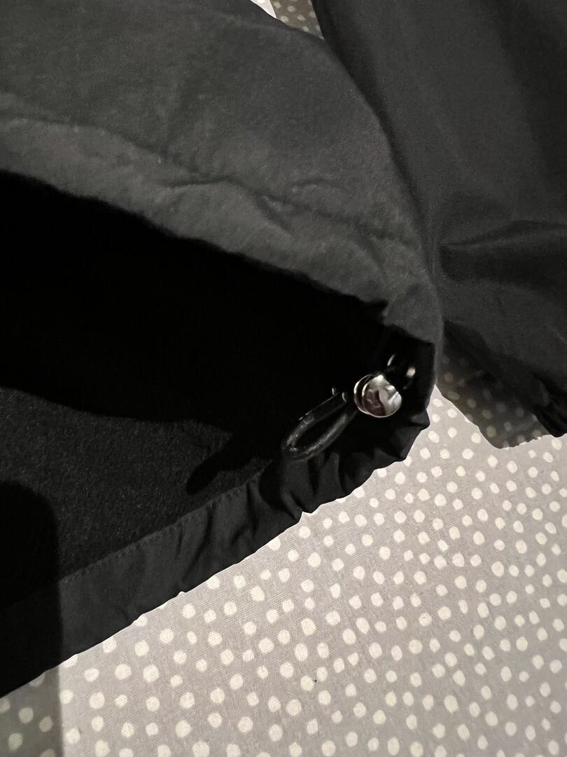 Hidden hood, fleece lining, adjustable at the bottom.