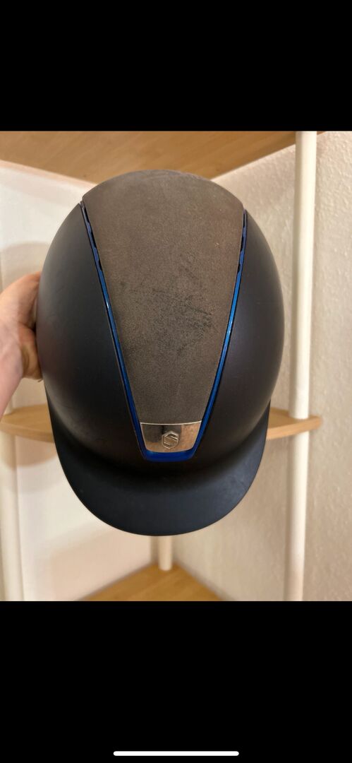 Samshield riding helmet M glitter - Samshield riding helmet Shadowmat with Alcantara in navy with Samshield glitter logo. The royal blue frame is an absolute eye-catcher. I have worn the helmet with pleasure, it is fall-free and still in good condition. Sale including helmet bag/dust cover unfortunately without inlay. Small signs of wear present. (See pictures for condition)