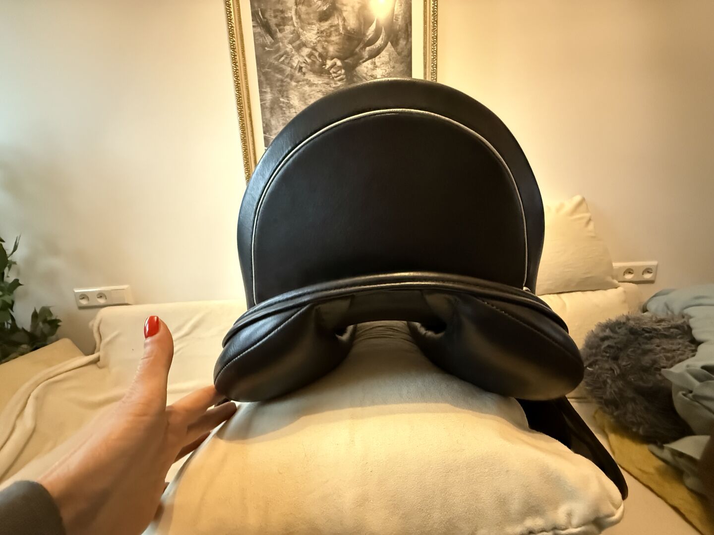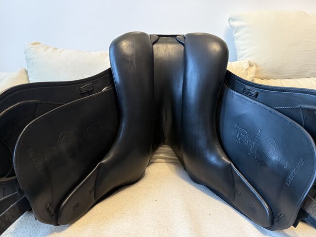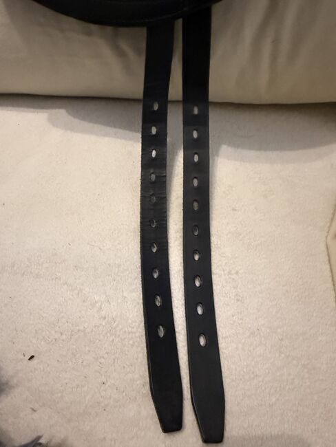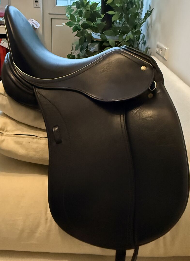 Schleese Bubi 16.5 seat 39cm support - I am selling my Schleese Bubi. Fully customizable on site, cold adjustable gullet plate. It was re-upholstered in Dec.25. For straight to slightly curved backs. Thanks to the Bubi (custom-made for short backs - 39 cm support), my horse has been able to make mega progress. Due to the low support and the great shoulder freedom (also suitable for ponies and small horses). Has been checked, fitted & re-padded by Schleese saddle fitters - 2 sheets enclosed - measurements of horse & rider Unfortunately, even a Schleese saddle can no longer keep up with physical development! See pictures. Please ask