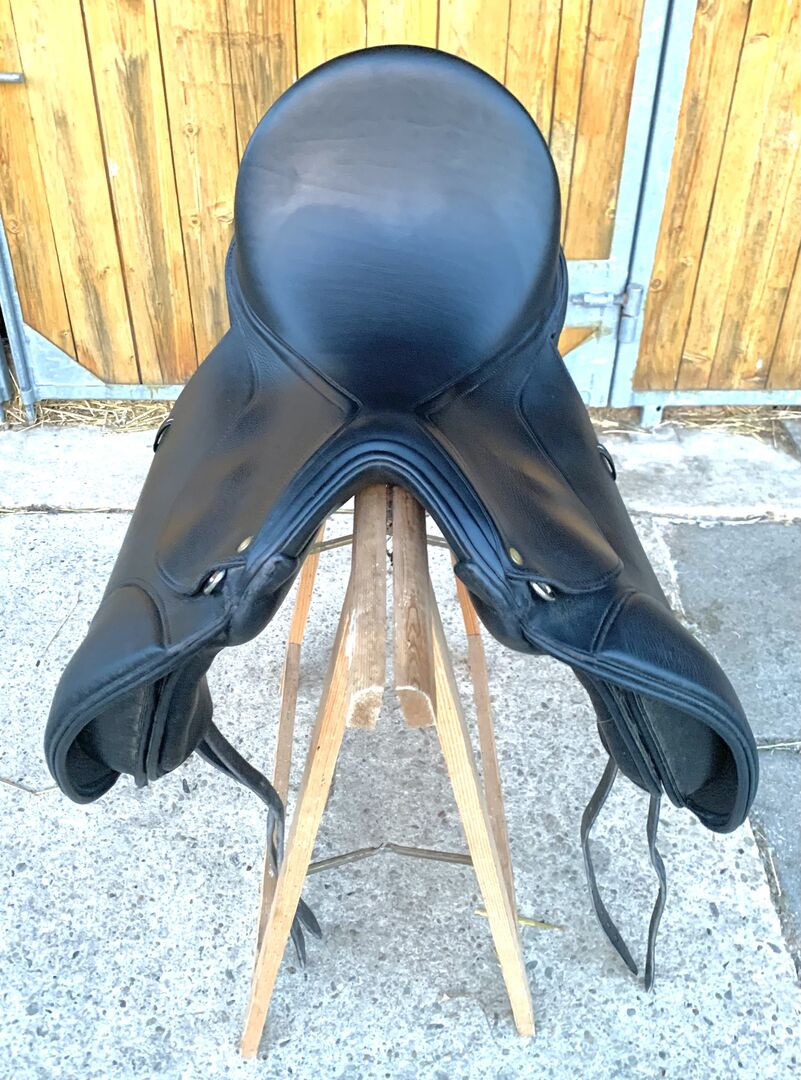Schleese dressage saddle Nina - We are selling this well-maintained and as good as new Schleese dressage saddle model Nina due to conversion to Western. - Seat size: 17,5" - medium seat depth - black color - integrated 5-point girth system - Velcro panels - Patented AdapTree with adjustable gullet plate (angle and width) - Wide channel with more spinal freedom - Wide panel contact surface for optimum pressure distribution and more freedom of movement