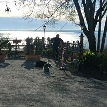 Restaurant with indoor dining room and outdoor panoramic terrace, seating over 50 guests.