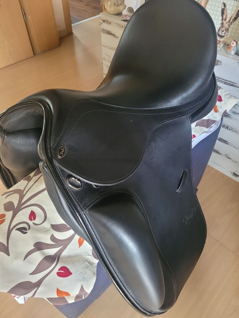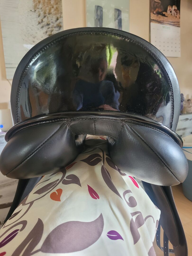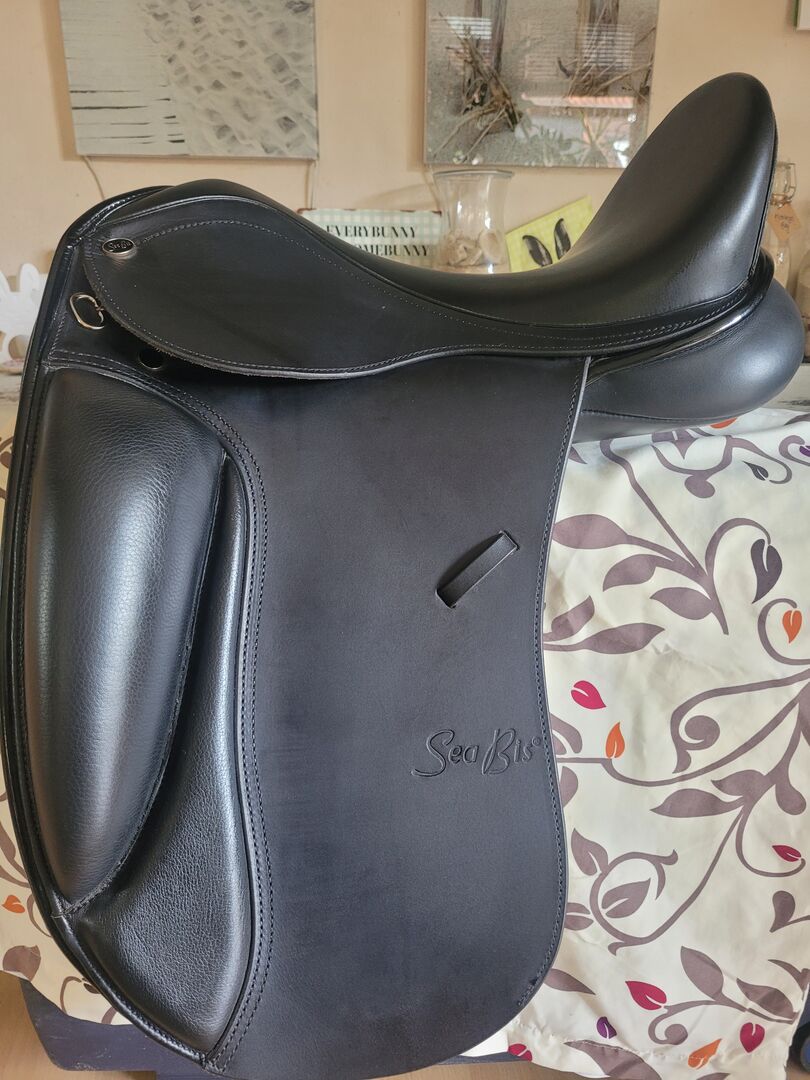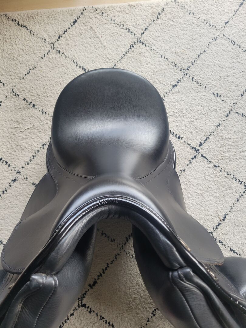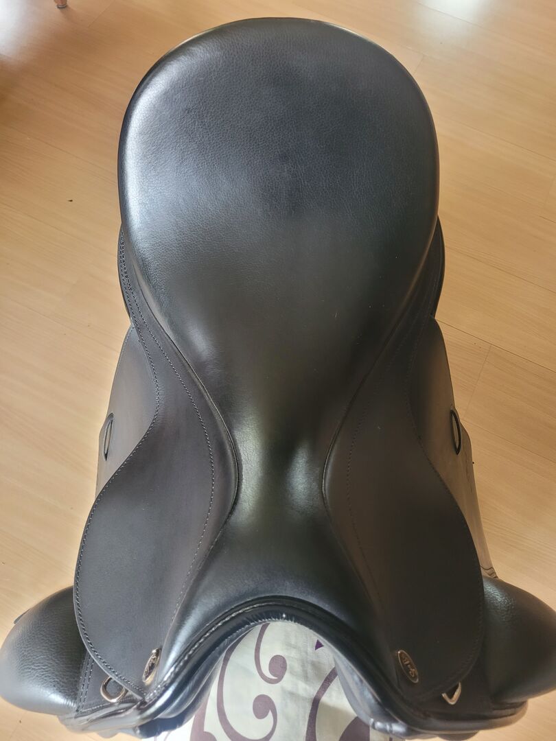Seabis Vigo Pro 17.5 inch with lacquer - This dressage saddle from Seabis is for sale. The saddle was purchased in April 2024. Unfortunately, despite the new saddle, my horse continued to have problems and symptoms with his stomach. In August, I decided to have my horse's back x-rayed. The findings were kissing spines in the saddle area. The vet advised me not to ride the horse. Now the saddle has been in the guest room since August 2024. It's too good for that. I had the saddle on my horse no more than 30 times. It has slight signs of use see photo 3,9,15. The saddle is being sold as my horse is no longer ridden. New price 2400€