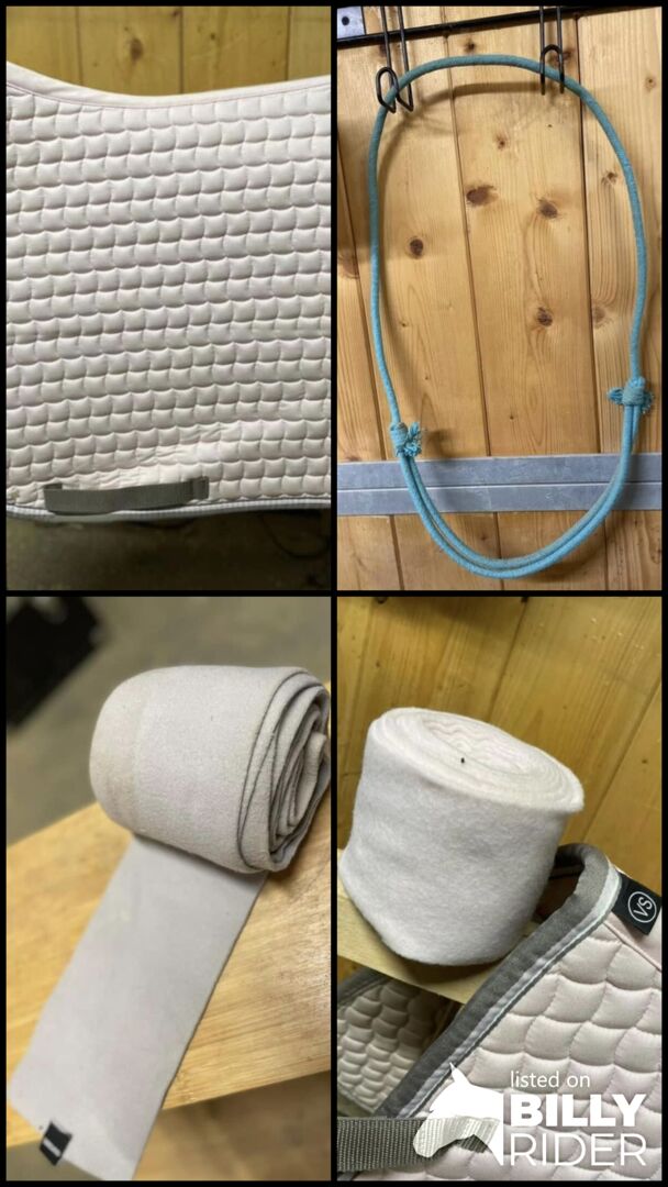 Sell some horse accessories - Sell some horse accessories - Eskadron bandages WB softgrey - 10€ - Eskadron bandage bag - 10€ - Eskadron saddle pad VS WB rosepowder + bandages in size pony only in set -50€ - neck ring blue adjustable - 5€