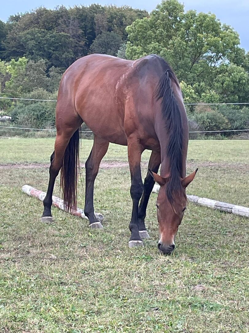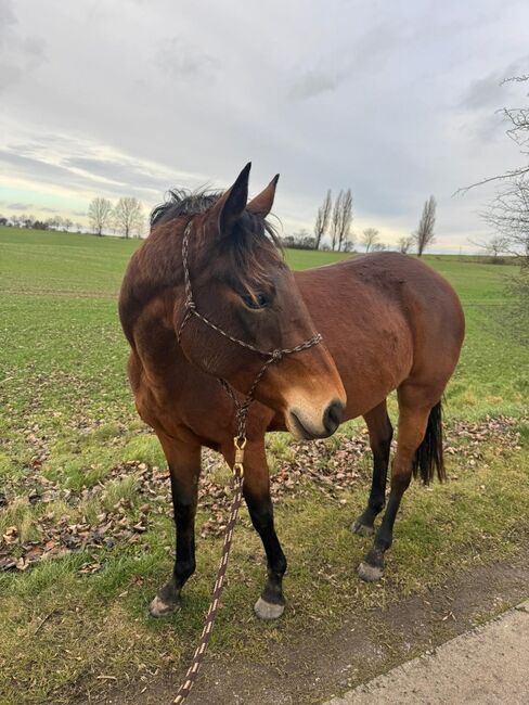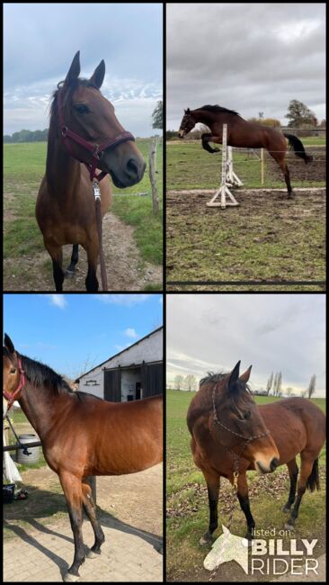 Sensitive riding horse mare (thoroughbred) for experienced riders with heart and patience - Location: 18230 Ostseebad Rerik Idola is a beautifully built, compact German riding horse (thoroughbred) mare, born in 2019, with a height of approx. 157 cm. As a 13/16 thoroughbred mare, she impresses with her elegant appearance and fine expression. She is healthy and has always been well cared for. She only shows a hormonal problem in heat, which is known and should be taken into account accordingly. Idola is very people-oriented, affectionate and sensitive. She has a sensitive character and reacts attentively to her owner. She is well-behaved at the farrier and vet, and is also easy to handle and uncomplicated in everyday life. She is used to being kept in boxes with access to pasture in winter as well as 24/7 grazing in summer and is used to mixed herd husbandry. Idola is trained in all three basic gaits under saddle. In dressage, she is on the way to A level and masters smaller jumps with ease. She is confident in the field, both alone and in a group. She is also motivated and willing to learn ground work. She is not a beginner's horse, but is looking for an experienced rider with an understanding of thoroughbreds and their special sensitivity. Idola is willing to learn, loves children and will develop great potential with the right support. She needs time, trust and a person who will give her security and continue to train her in peace. Once she has found the right partner, she will grow up to be a great and reliable horse. As the mare and her current rider are not a perfect match, Idola will only be passed on to good, experienced and responsible hands.