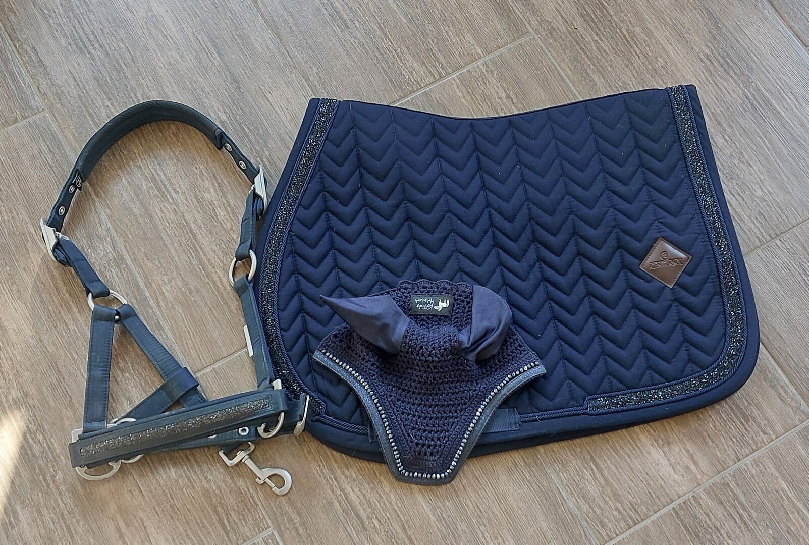 Set in dark blue from Kentucky/ Eskadron - I am selling this beautiful set from Kentucky in size pony The halter is from Eskadron Can also be purchased individually. Set price 100€