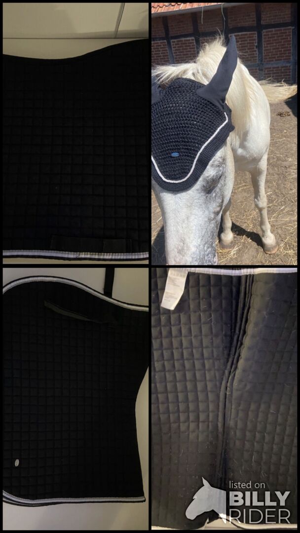 Showmaster Set (saddle pad+fly hood)VS/Full/Black - Heyy, I sell my hardly used saddle pad from Showmaster.it was at most 5 times on the horse just like the matching fly hood(size Full).the saddle pad has no defects and there are hardly any hairs on it.all in all the set has a new price of 55€.