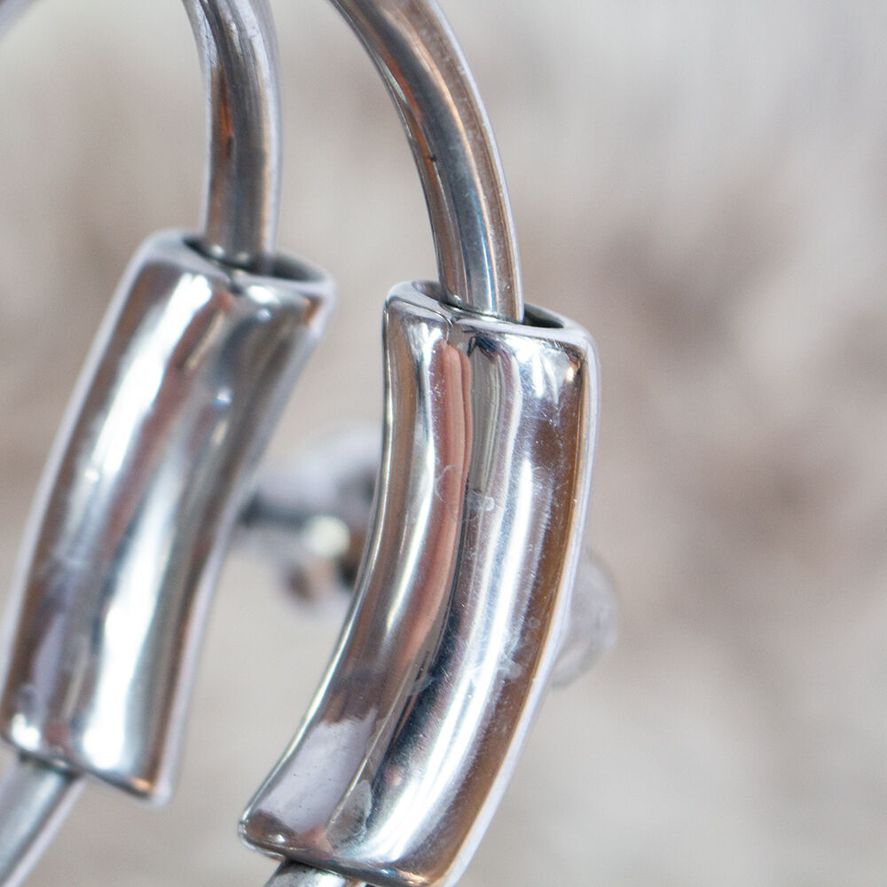 Silk Steel Ring Remount Snaffle 13.5 - This great ring remontent bit from Silk Steel combines many different bits and their advantages. The bit uses the advantages of the water snaffle (higher chewing activity due to free-running rings) and those of the olive head snaffle (lower risk of pulling through and protection of the corners of the mouth). It is made of stainless steel and 15 mm thick. The bit is easy to clean and durable. It is as good as new and has no defects. To the seller's offerlaunch