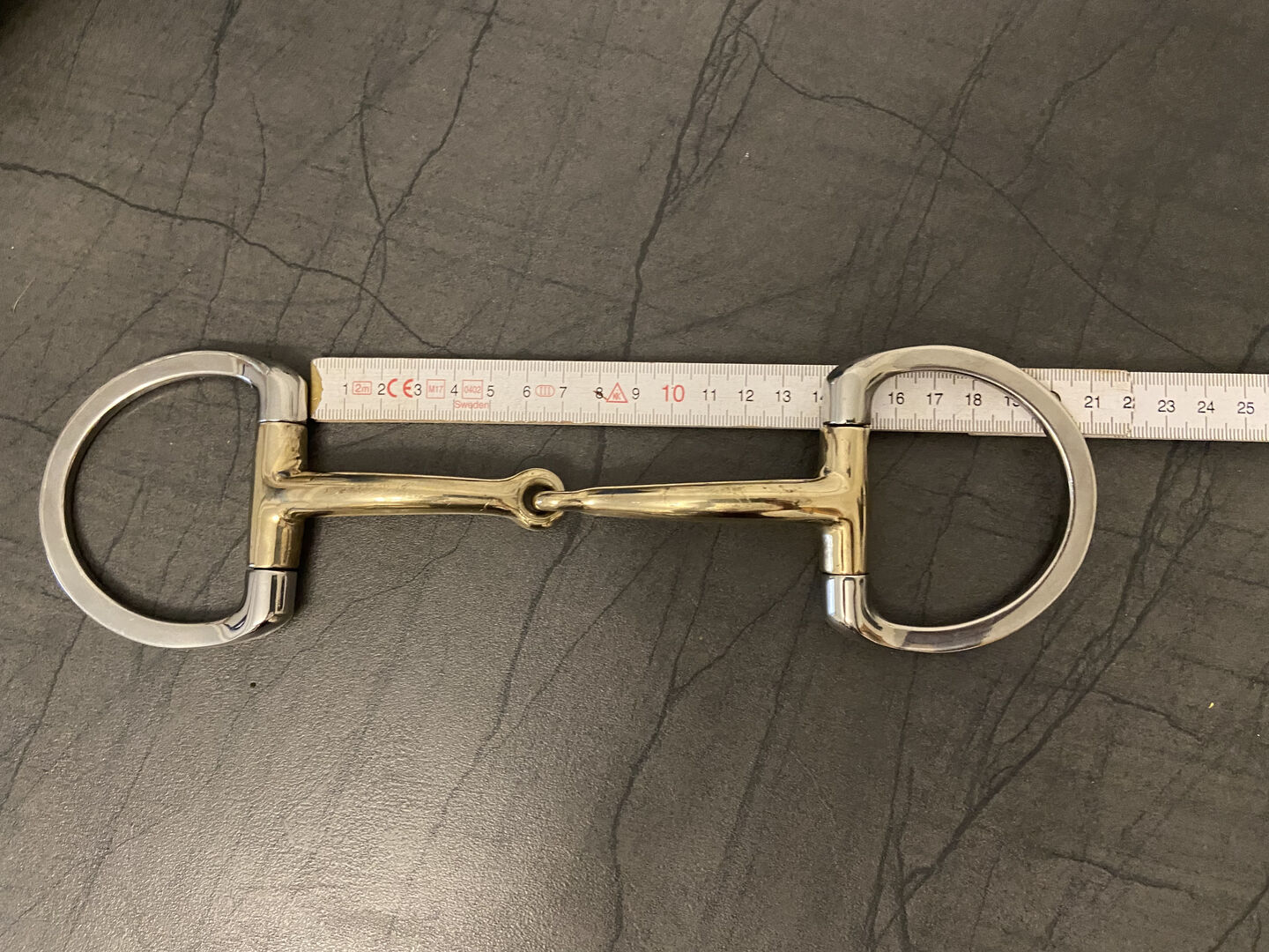 Anatomically shaped. Single broken. Strength 12mm. The bit stimulates salivation and demands looseness. D-rings are made of stainless steel. The mouthpiece is made of a nickel-free alloy, which is softer than stainless steel and therefore softer to the horse's mouth. The bit has been used twice. Original price 59,90 € (invoice June 2021 available) Length: 14cm