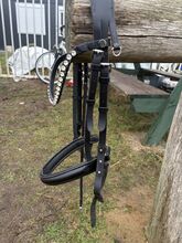 Snaffle/black/brass/ WB with browband changefast/with reins - Snaffle from Fouganza with SHOWMASTER Browband Change Fast Diamond (as good as new), used but no damage. Also used reins, also from Krämer. It is worth buying more