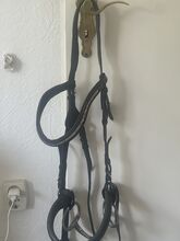 I am offering an English bridle with combined noseband by Barefoot. The snaffle is in size cold blood and has a browband from Showmaster on it. The bridle is specially designed for large horses and has been specially adapted for them. I had it on a Lithuanian cold blood for a short time.