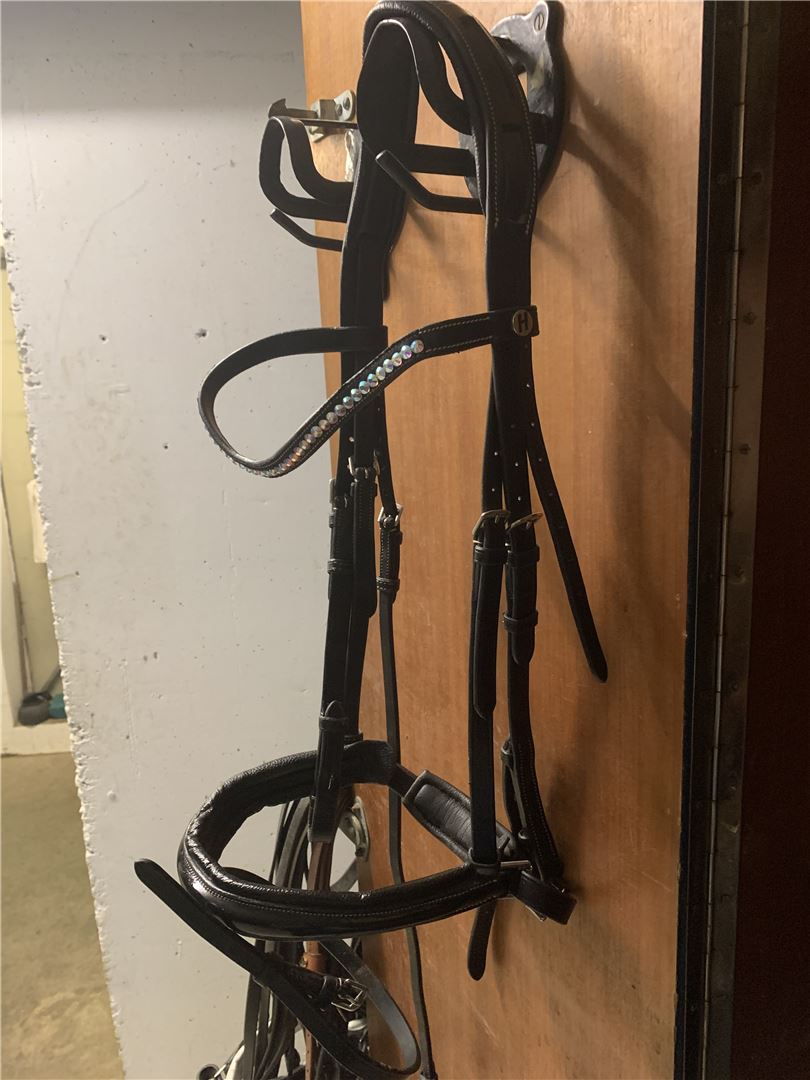 Snaffle Lancaster - Snaffle Lancaster from Harry's Horse Black with white stitching Neck and noseband nice soft padding All crystals on the headband available Swedish noseband Size WB