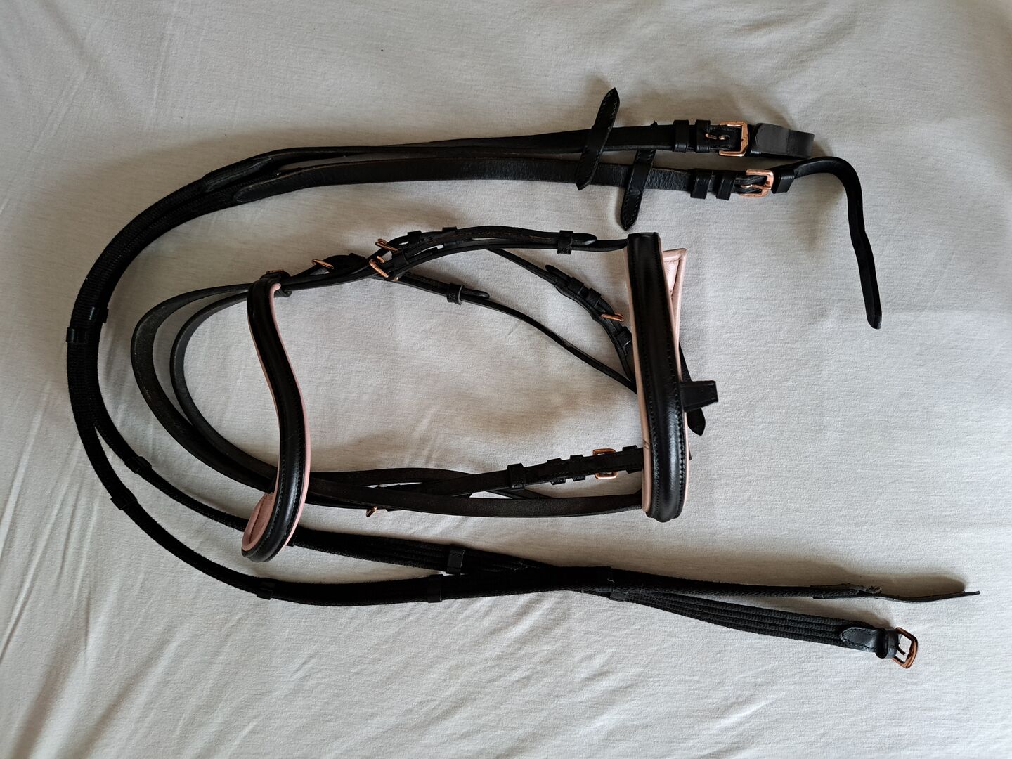 Snaffle Showmaster Pony Pink Lined - The bridle is in good condition, has no defects and looks very nice. Reins are included because they have been used several times.