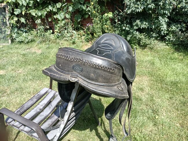 The saddle is sold as shown in the pictures with accessories. - with belly girth (55 cm) and belly girth pad (neoprene) - with stirrups and stirrup girths - incl. pictured padded pad with spine clearance