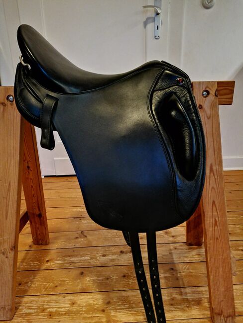 Sommer describes it like this on the homepage: "The XCross Dressage is the perfect saddle for daily work in the arena and for riding out into the countryside. Attached flap Slight forward cut Semi-deep seat Freely suspended felt sandwich panel"