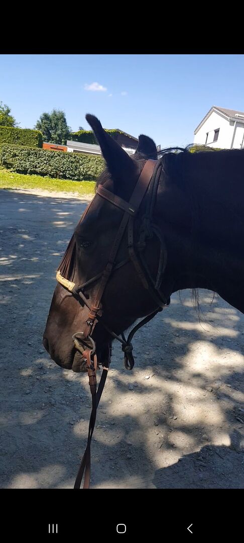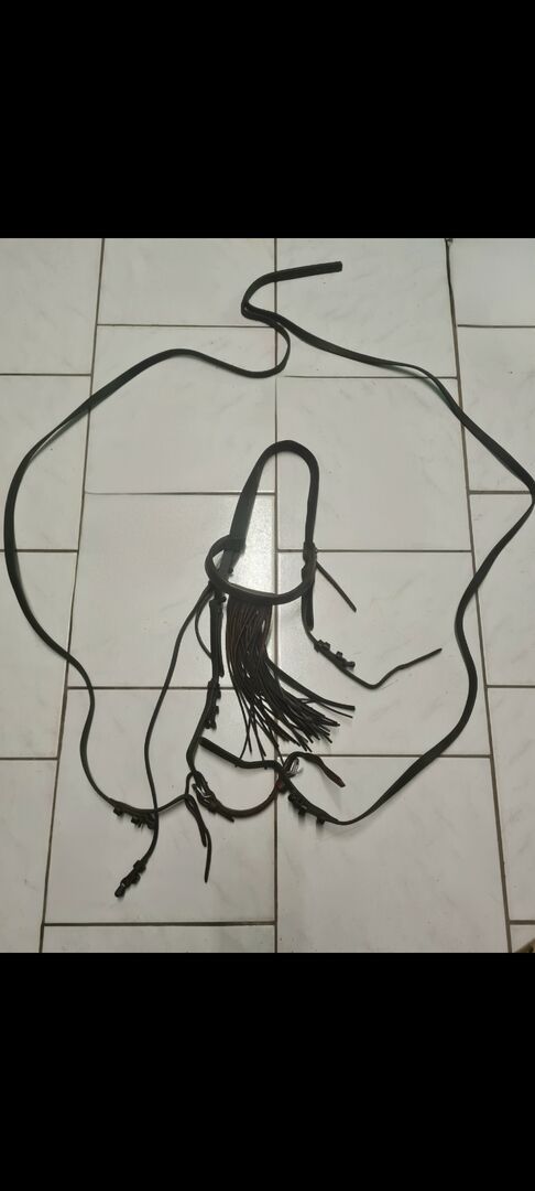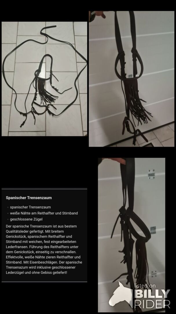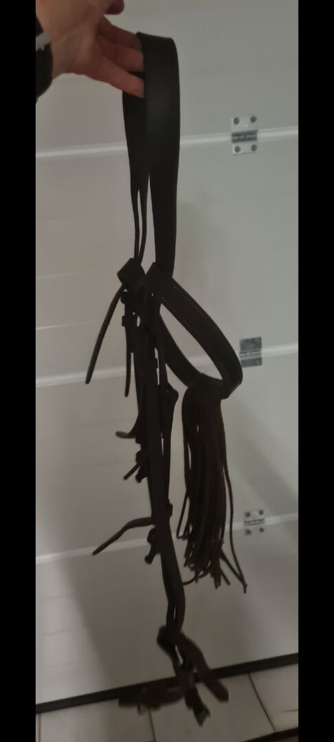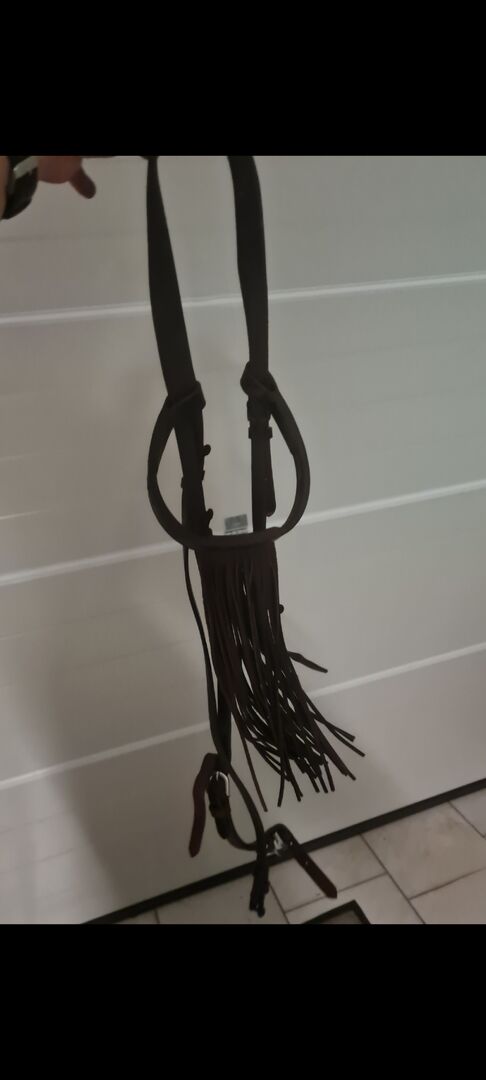 Spanish snaffle bridle - Spanish snaffle bridle including closed leather reins, with integrated fly protection