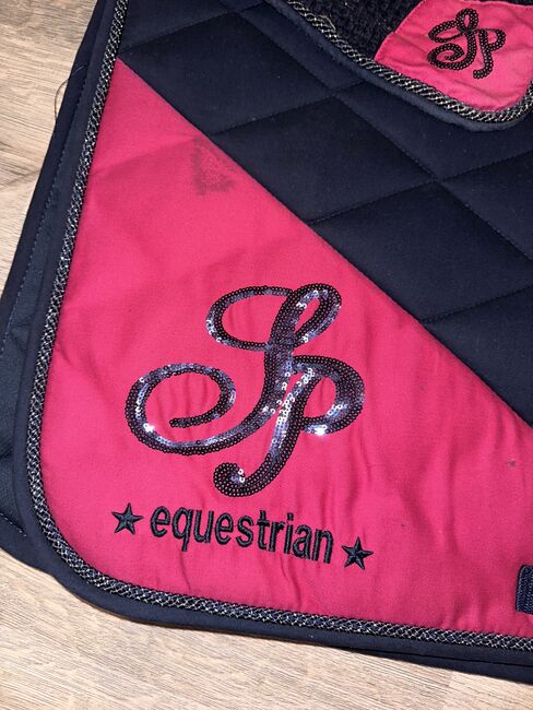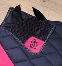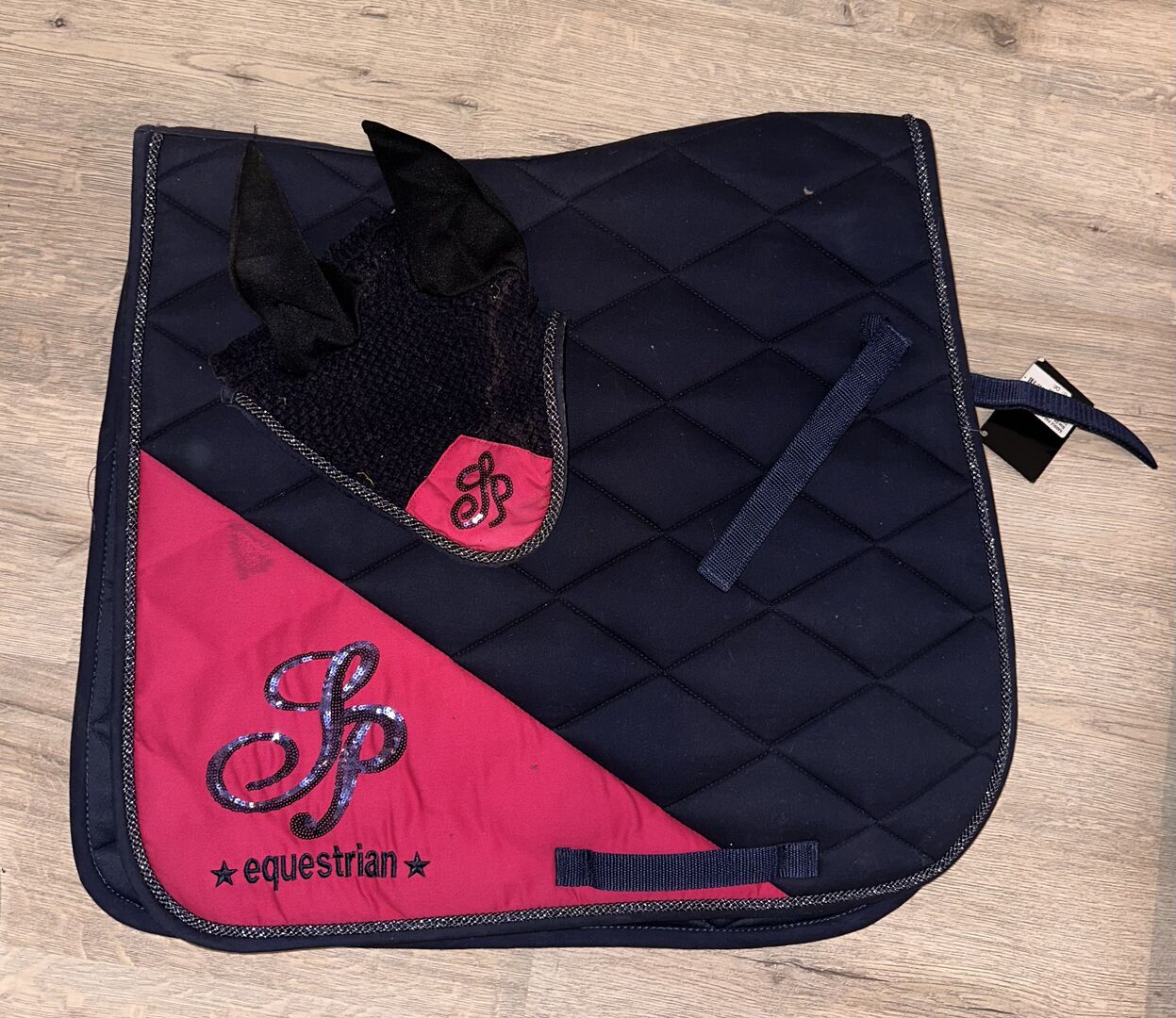 Spooks Set (dressage saddle pad & fly hood) - ✨Colors: dark blue/pink ✨never used, slight signs of wear from storage (see photos) ✨Saddle pad with price tag