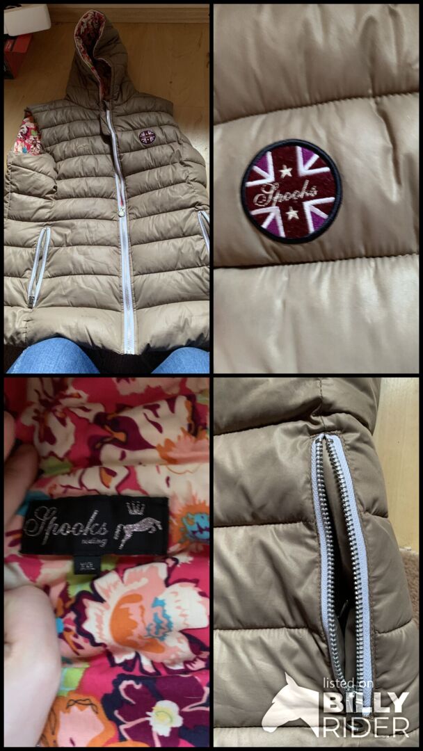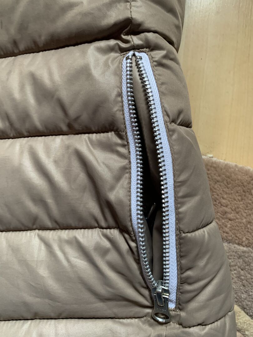 I am selling a Spooks vest in Beach an. The vest can be closed with a zipper. Pockets are secured with a zipper. There is a hood on the vest.