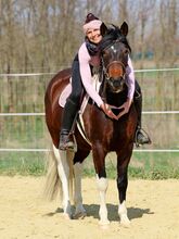 Sporty 3-year-old mare "Ribizli" for sale - Ribizli is a three-year-old mare with a special charm and outstanding character. She is attentive, people-oriented and well-balanced. She has grown up in a herd, is well socialized and is also used to being kept in a stall. She is athletic, motivated and eager to learn, responds well to aids and always remains well-behaved and clear-minded. With Paint-Horse pedigree, she is ideal for western riding, but can be used in many different ways. Currently approx. 150 cm tall, still growing, barehoofed and farrier-friendly. Meet and test ride possible at any time (Hungary). Transport can be organized. Please contact us. Please contact us via Whatsapp (Cary): 0664/9298340