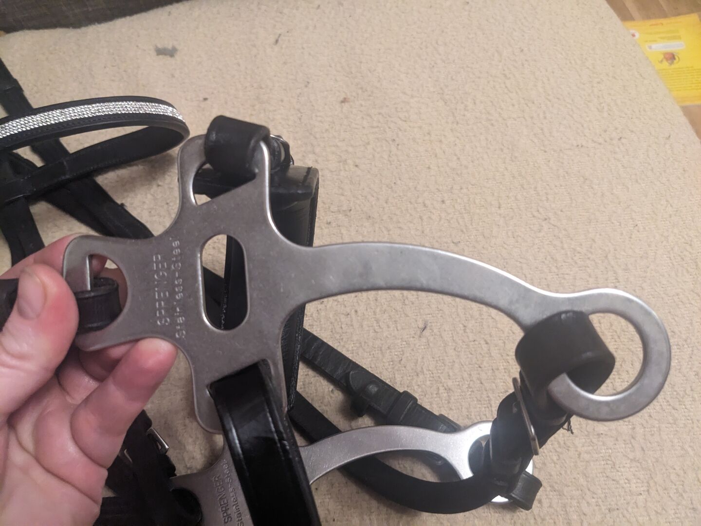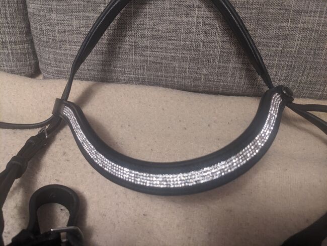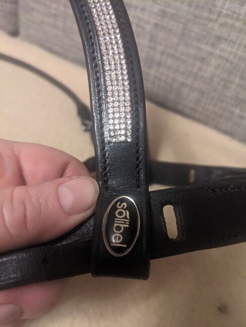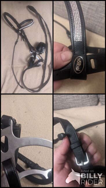 Sprenger Hackamore Solibel bridle with reins - Rarely used Sprenger Hackamore in perfect condition on Solibel bridle (please note: no noseband included, but as can be seen in the pictures there is the possibility to put a noseband through), all stones from the beautiful browband preserved, including reins without martingale stopper (one small strap torn off, see picture).