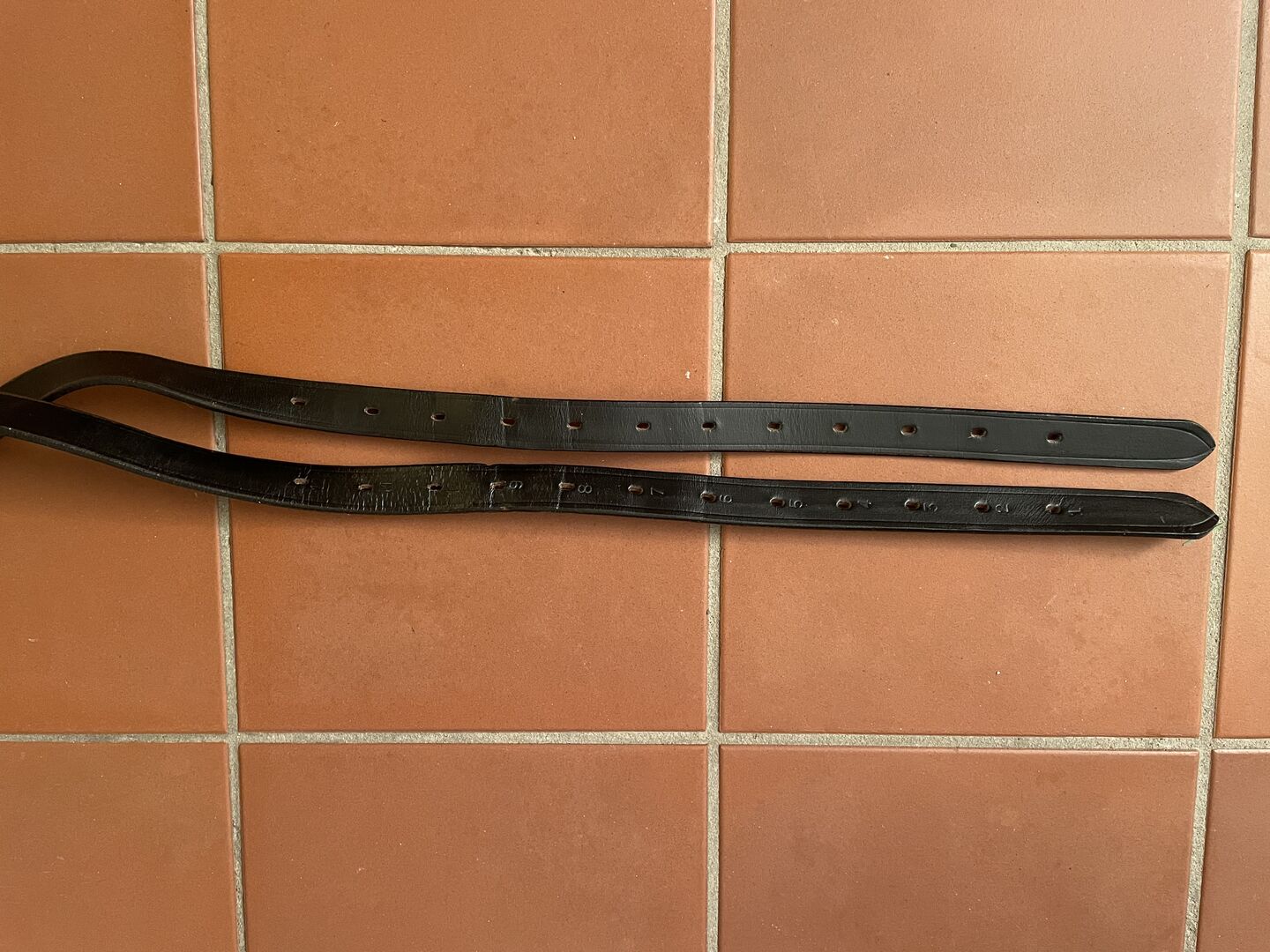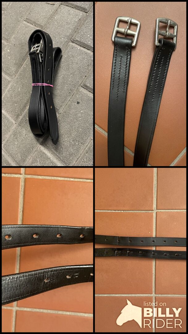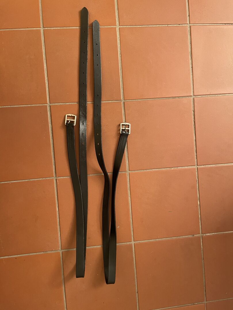 Stirrup leathers leather black 145cm as new - Stirrup leathers made of genuine leather in length 145 cm in absolute mint condition. Only very short time in use.