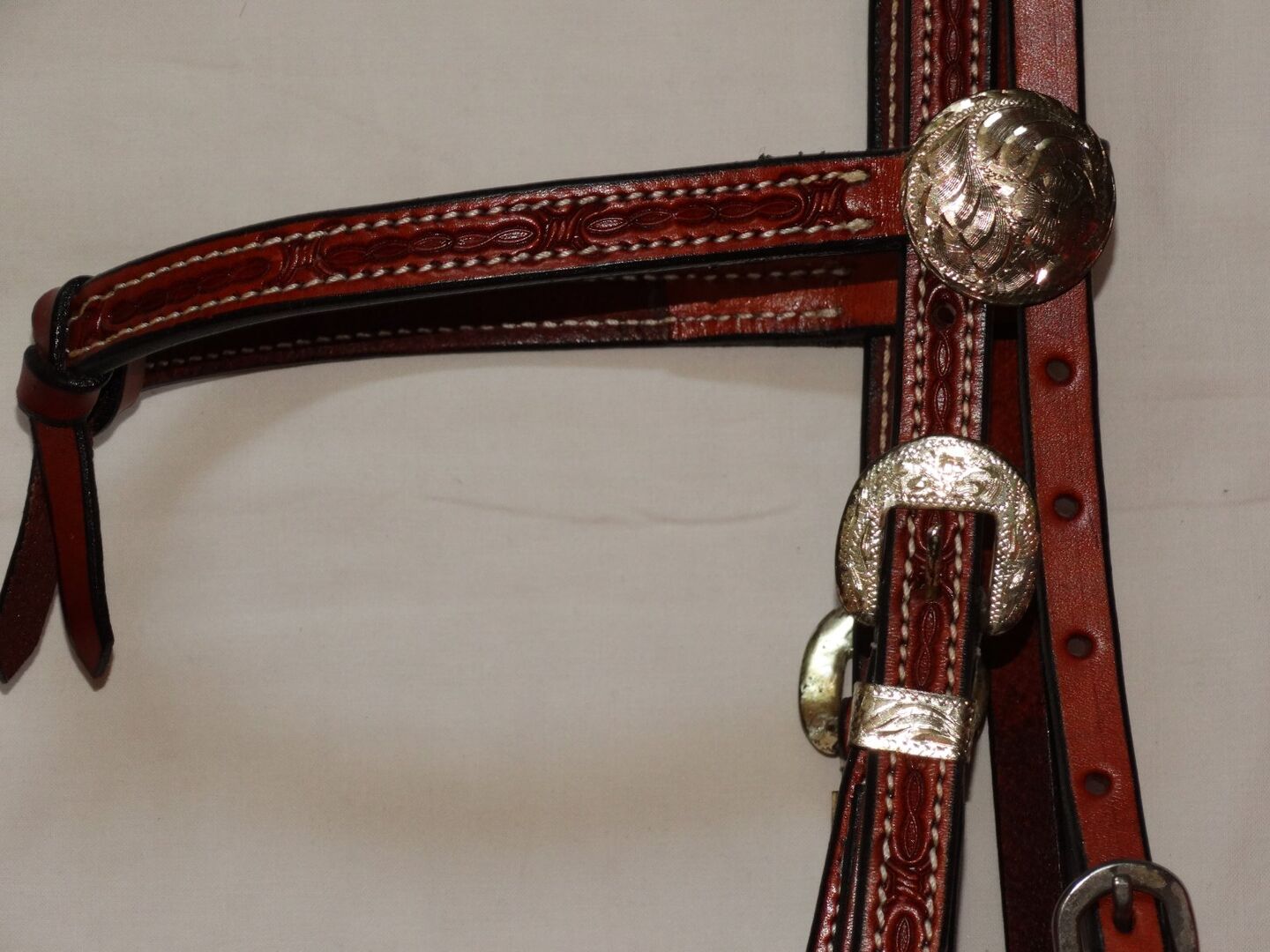 The headstall is hallmarked and has silver fittings.