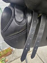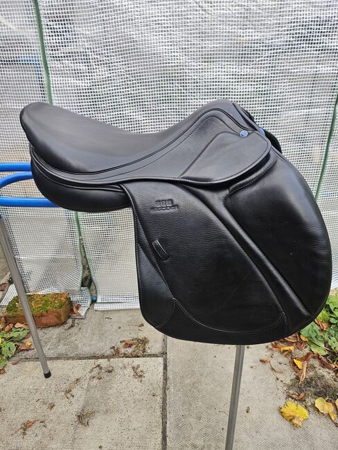 Beautiful quality and very comfortable jump saddle, handmade in Germany for 16.1 hh sportshorse. Very lightly used due to lack of soundness and now no longer needed. Cover included. Absolute bargain.