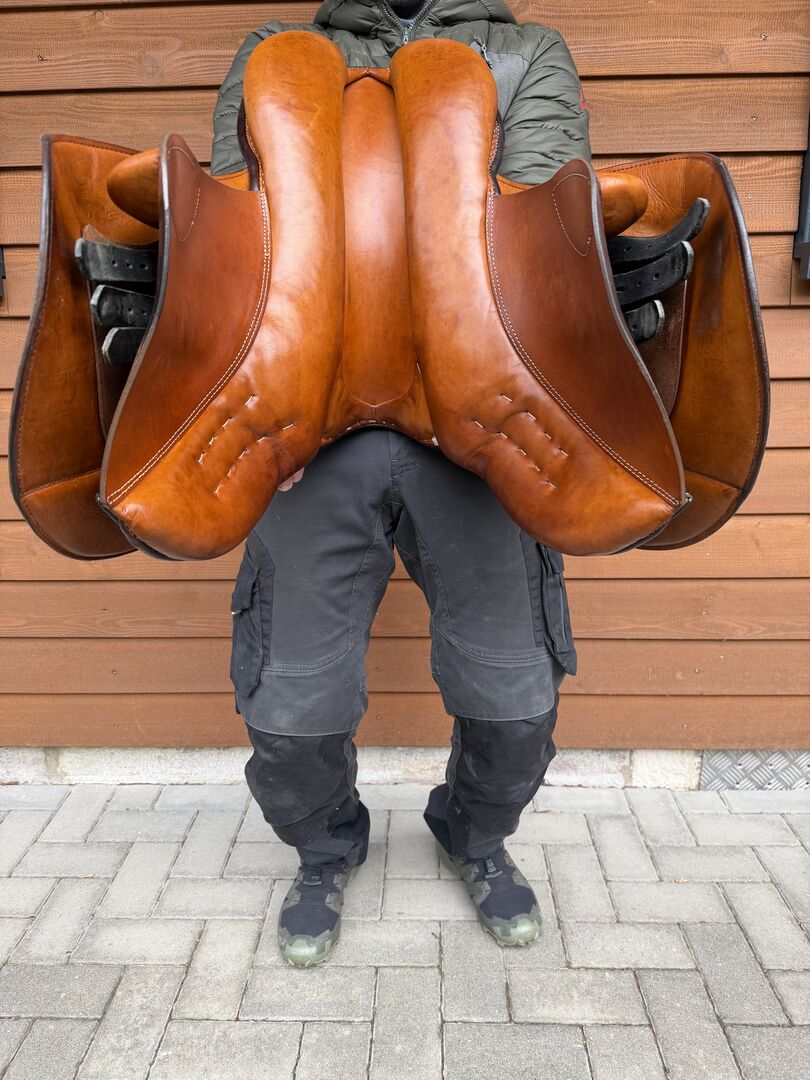 Stübben jumping saddle - Selling my Stübben jumping saddle Siegfried M.F. Spezial in red-brown color.