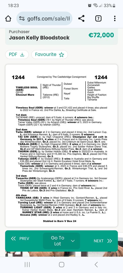 Successful, pregnant thoroughbred broodmare - After long consideration and for private reasons I am selling my thoroughbred mare Tatienne, who has a top pedigree and an extra class dam line, is a sister of the well known stallion Tai Chi and other group placed horses. She is 12 years old. She has 5 offspring 4 of which were on the track and all 4 winners. One daughter even won blacktyp status in France. offspring already sold for 85 k. She is a big framed, powerful mare (warm blooded type). stands near Hamburg in stud. Approx 168 cm in height. She is in foal by G1 placed Nerik. Price includes decktax. if you have any further questions please contact me by email: veressandor8826@gmail.com 015166768973