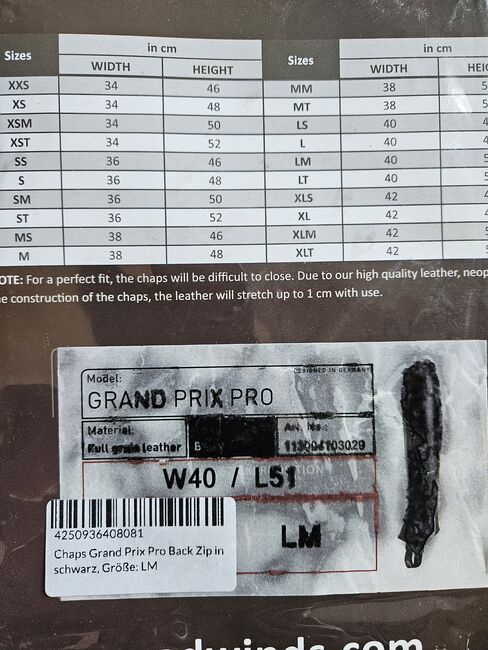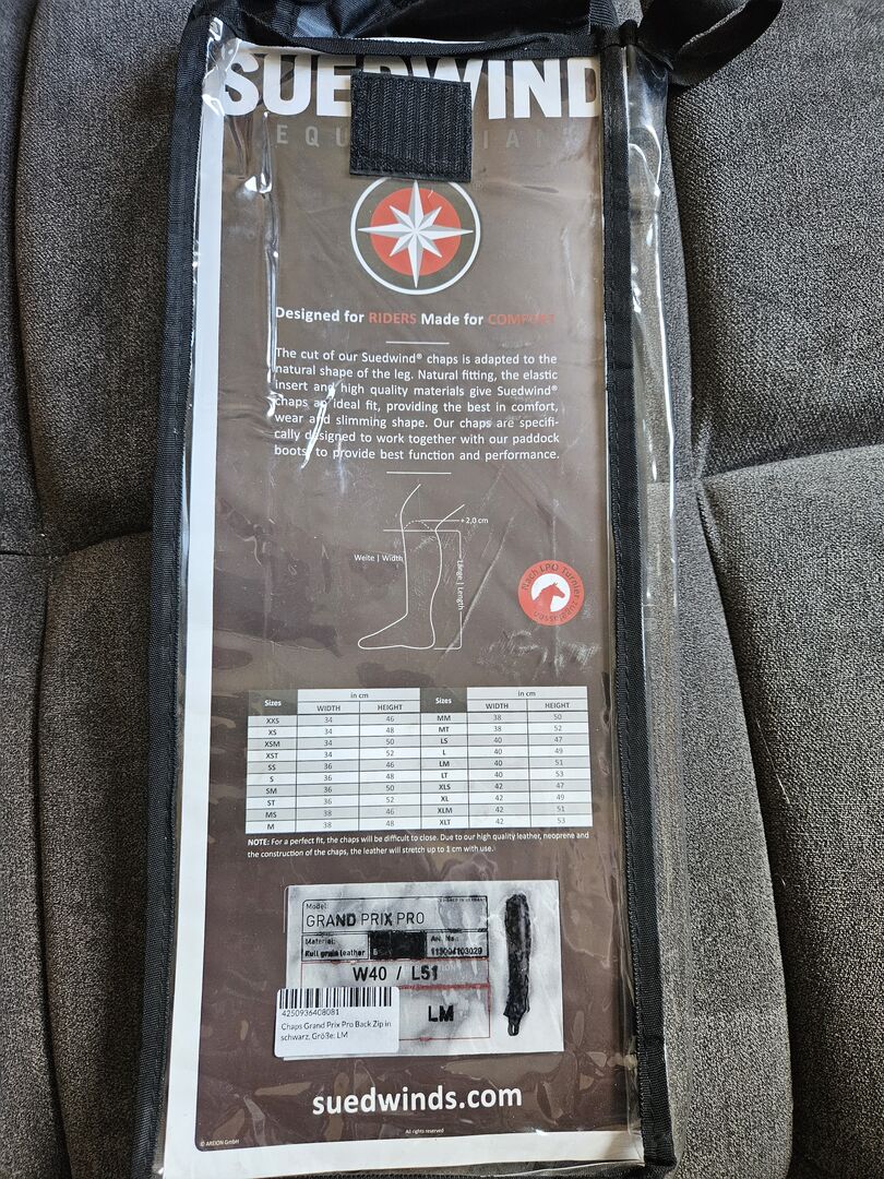 Suedwind leather chaps - Selling new chaps from Südwind. Great quality, but unfortunately I made a mistake with the size. Please take the measurements from the pictures.