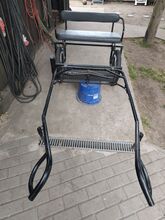I am selling my sulky again due to an unreliable buyer. The sulky is suitable for Mini Shetty and Shetty and has a brake. It has slight signs of use. The leather on the backrest and seat has no tears, holes or similar. It is adjustable on the single bridle depending on the size of the shetland horse. At the moment the sulky is still a little dusty.