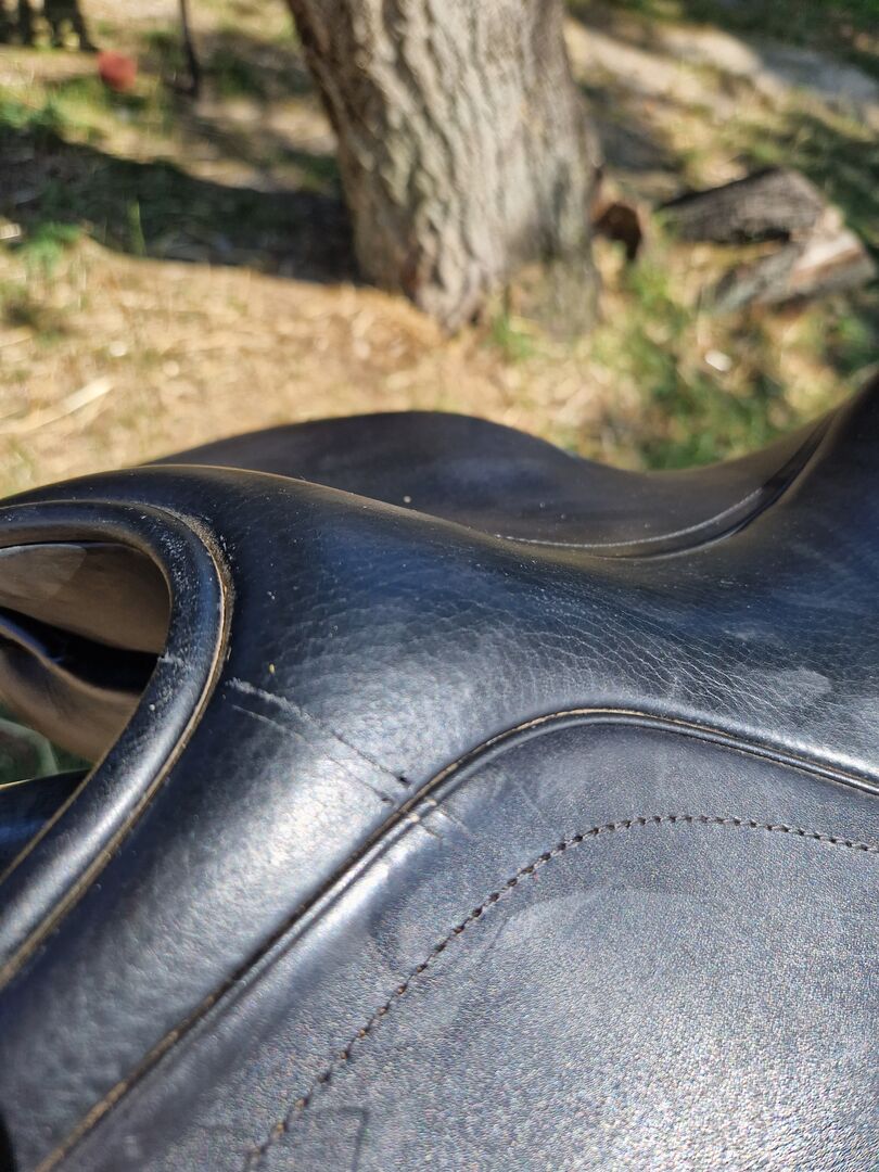 The saddle has been well cared for and has always stored dry. It has a small scratch in the front (see pictures), but it is not deep.