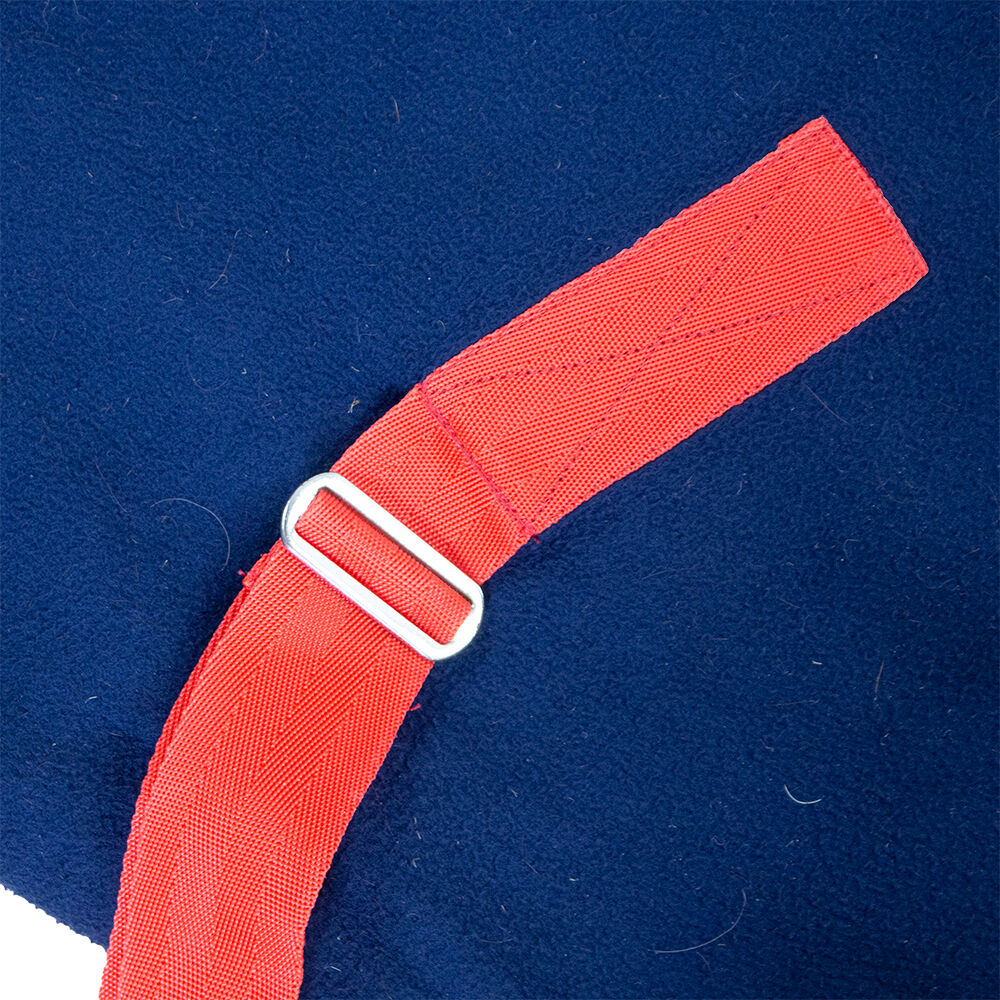 Sweat blanket with cross girth blue / red 135 - A beautiful sweat blanket with a back length of 135 cm. The blue blanket is the perfect companion in the cold months. She many red details, such as the cross girth and the chest closures. The blanket is generally in good condition. Unfortunately the fleece fabric on the cross straps is coming loose a bit in the corners. The blanket may have horse hair. To the seller's offerlaunch
