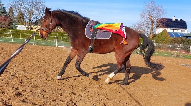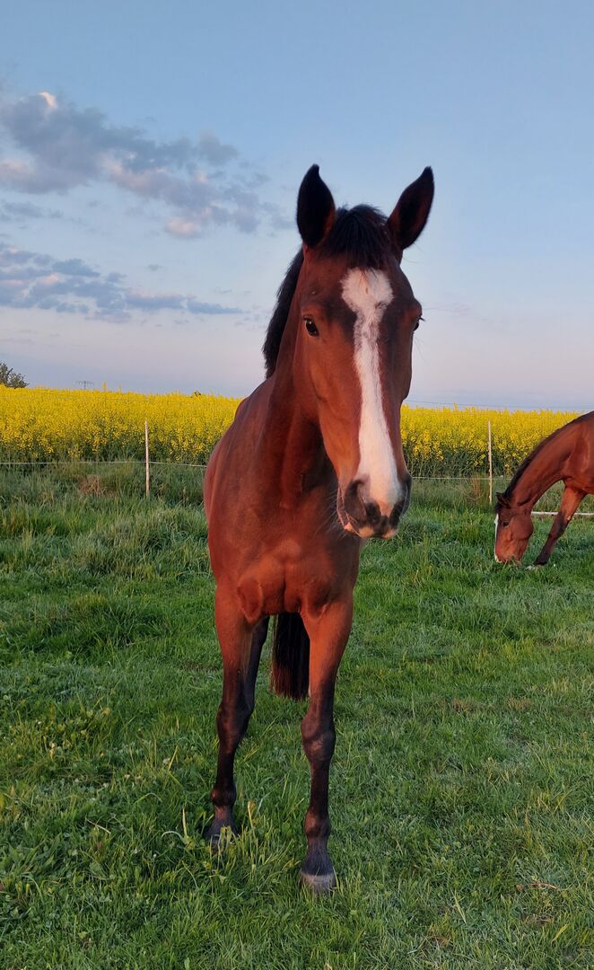 Sweet mare - The mare is 8 years old, approx. 164 cm tall and was born with me. She was allowed to grow up in peace and was gently and independently weaned from her mother at around 11 months. She is broken in and knows all gaits under the rider. Recently, however, she has not been ridden for a long time as my focus has been more on ground work, which I really enjoy. I would like to find her a home in an open stable with nice friends and enough space to exercise. It would be especially nice if she could continue to be worked bitless, as that is what she is used to. If you are seriously interested, please send me a message.