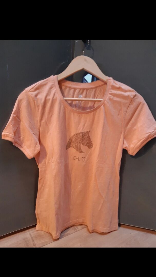 Figure-hugging t-shirt from elt in apricot, size M (fits 38). With attached stones at the front and gold trim at the top. New and unworn, only washed once and then put in the closet. NP 29€