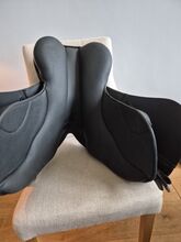 Black thorowgood gp compact synthetic adjustable saddle 17" seat. Very comfortable. It comes with a black gullet. It is as good as new as it has only been used for 4 months.