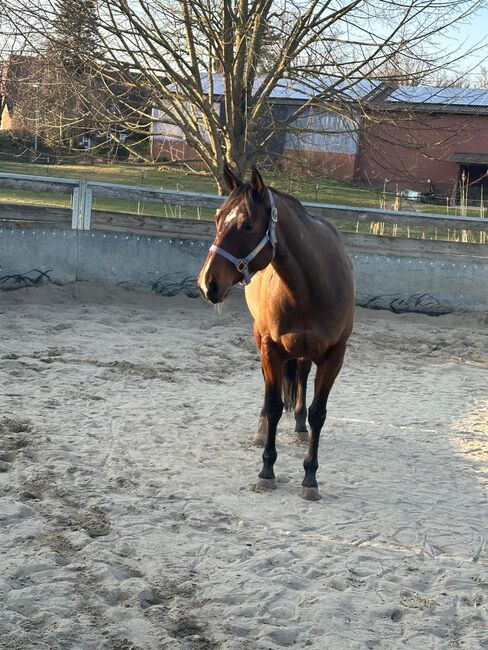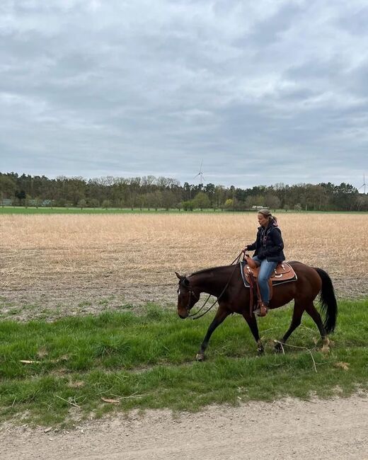 Top trained Quarter Horse mare - Location: 29690 Grethem Giggling Gracy - finely trained Quarter Horse mare, born in 2014 with a height of 150 cm, is looking for a new 5-star home due to a reduction in herd. Grace is a lovely, honest and cooperative mare who is a lot of fun to handle and to ride. She is very people-oriented but also sensitive. Grace is currently in a paddock box, but also knows pasture and herd management. She is healthy, recent x-rays are available without any findings. The mare has very good western training in the direction of all-round and is ready to show. She has 6 years of show experience and has been shown successfully, especially in trail and ranch riding. Grace has attended many courses with her owner and also goes off-road. The mare has a very good, old reining/all-round pedigree. Her sire is Broadway BH. A top sire who had a significant influence on the reining scene. Her dam has Poco Pretty Boy and Bulls Billy Van on her pedigree. If you are looking for a top trained senior horse, Grace is just right for you.