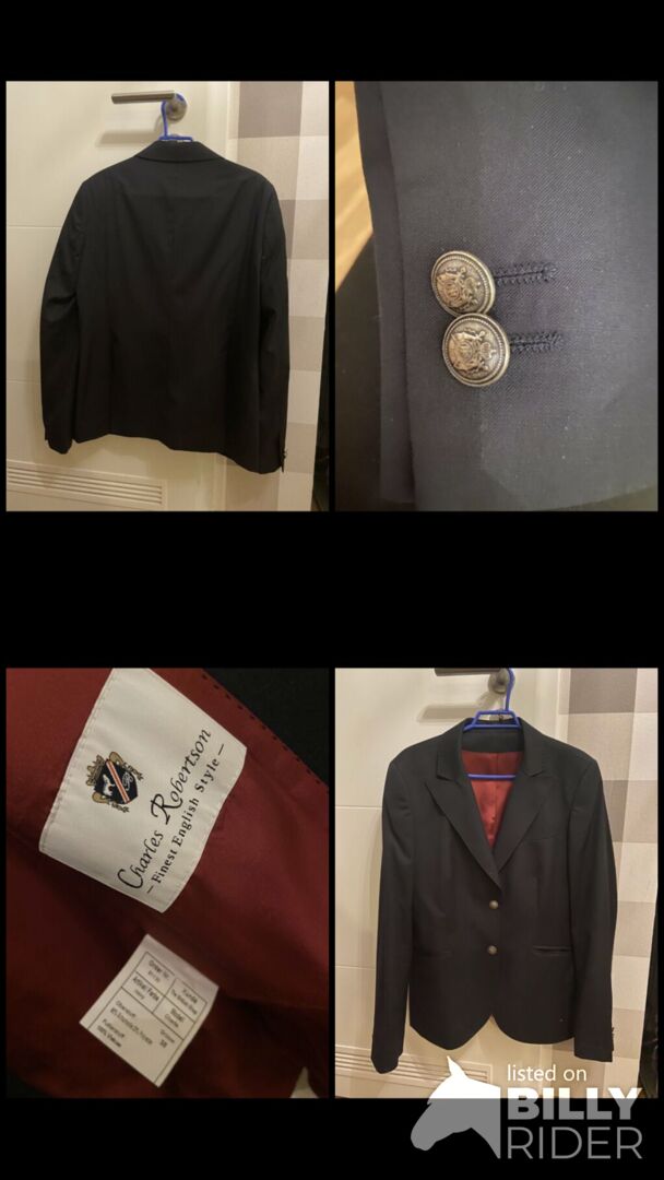 Tournament jacket -Navy- - As good as new tuning jacket from Charles Robertson in size 38 in the color navy. The jacket is double slit at the back and very elaborately worked. A highlight are the embossed buttons