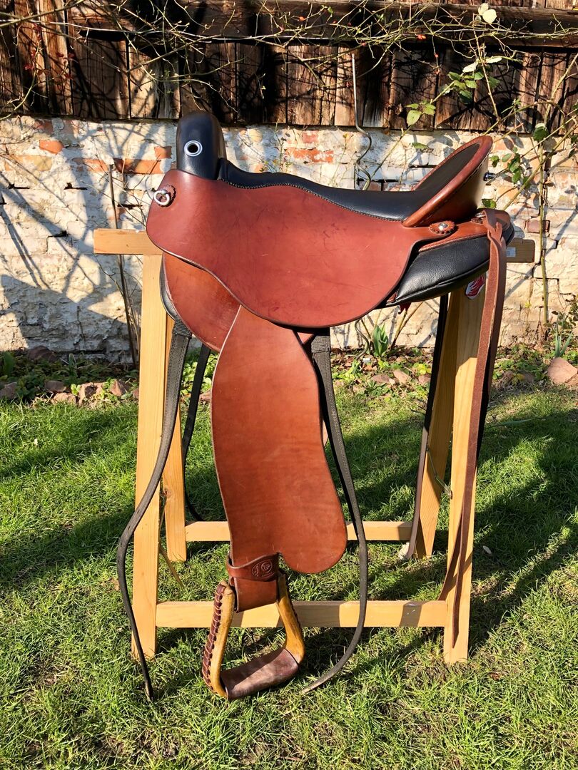 Trail Riding Saddle Quantum Short & Light Saddle S3 by Deuber & Partner - I sell my Quantum Short & Light in seat size S3 in the leather colors Havana / black. The chamber width is infinitely adjustable with the help of the accompanying Allen key. Including saddle cover (saddle blanket is already gone).I bought the saddle in September 2021 from the saddler and rarely used since then. Therefore, the cushions are also still completely unused. The saddle has everything that a good cross-country and trail riding saddle must have, is very short and weighs only about 8 kg. I sell him only because we switch back to a classic eventing saddle without fenders.