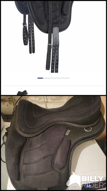 Treeless saddle from Krämer - Ultra lightweight, treeless saddle With camber spring and D-rings for attaching e.g. luggage and crupper. crupper. Made from breathable material. Hardly used, I will gladly send you pictures! Stirrup leathers and stirrups are included if you need them.